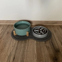 Elegantna siva boja i ovalni oblik omogućuju skladno uklapanje u vaš interijer, dok prostor za dvije zdjelice zadovoljava potrebe vašeg ljubimca. Podloga je praktičan dodatak svakom kućanstvu koje brine o čistoći i udobnosti svojih dlakavih članova.