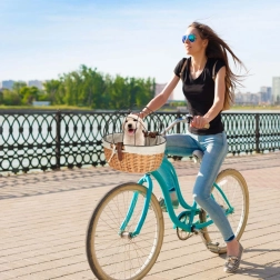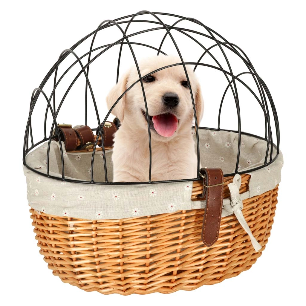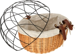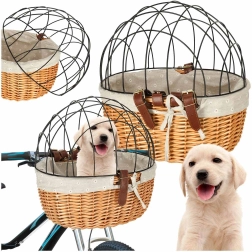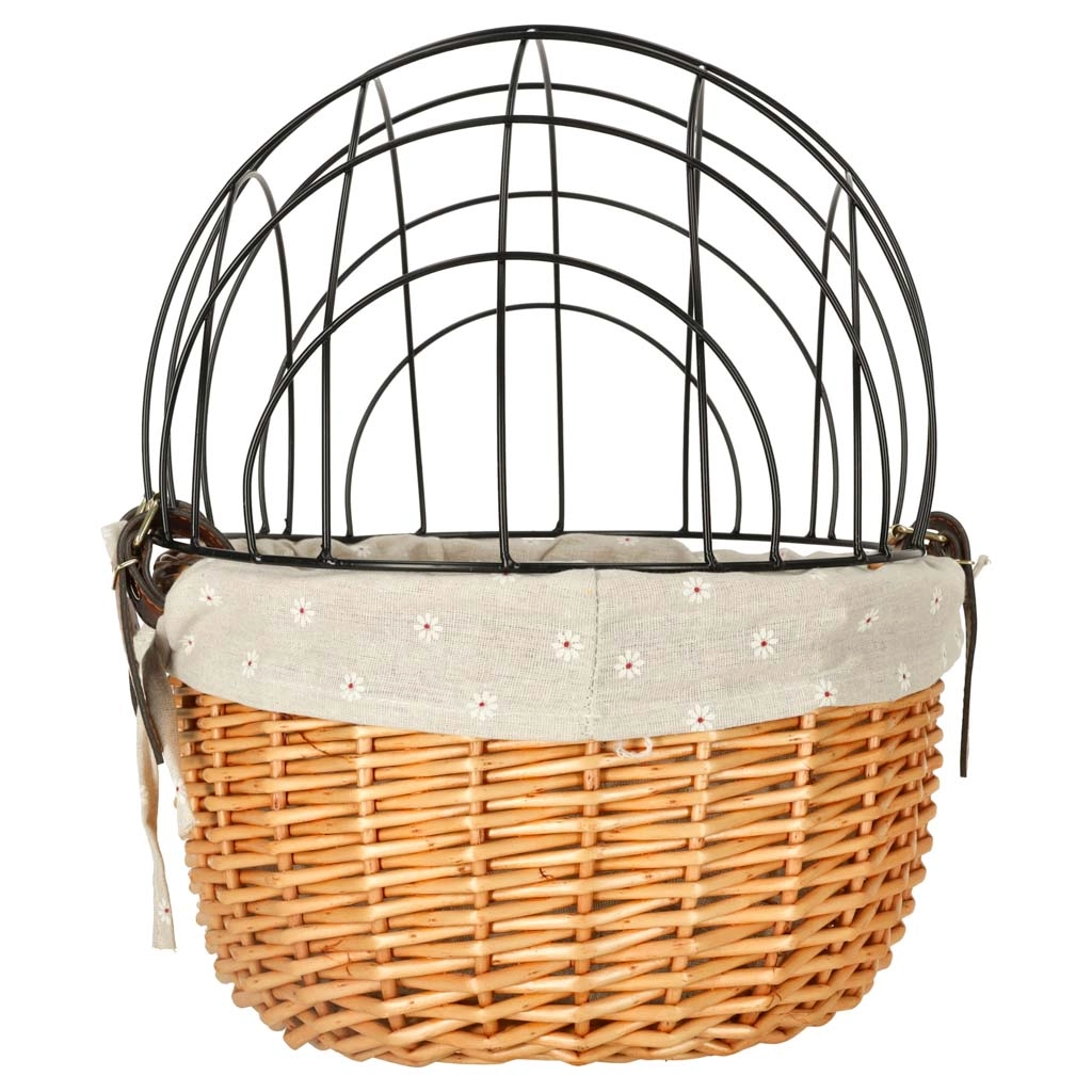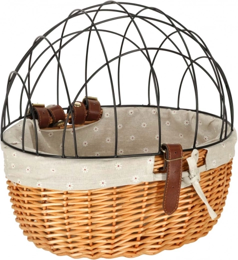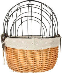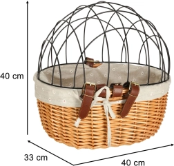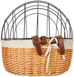 Ova pletena košara za bicikl nije samo stilski dodatak vašem biciklu, već prije svega siguran i udoban način za prijevoz vašeg ljubimca. Košara je izrađena od visokokvalitetne pletene trske, što jamči njezinu izdržljivost i dugotrajnu upotrebu. Lijep, prirodan izgled u kombinaciji s tekstilnom podstavom daje joj jedinstven karakter. Metalna mreža štiti vašeg ljubimca tijekom vožnje od ispadanja.