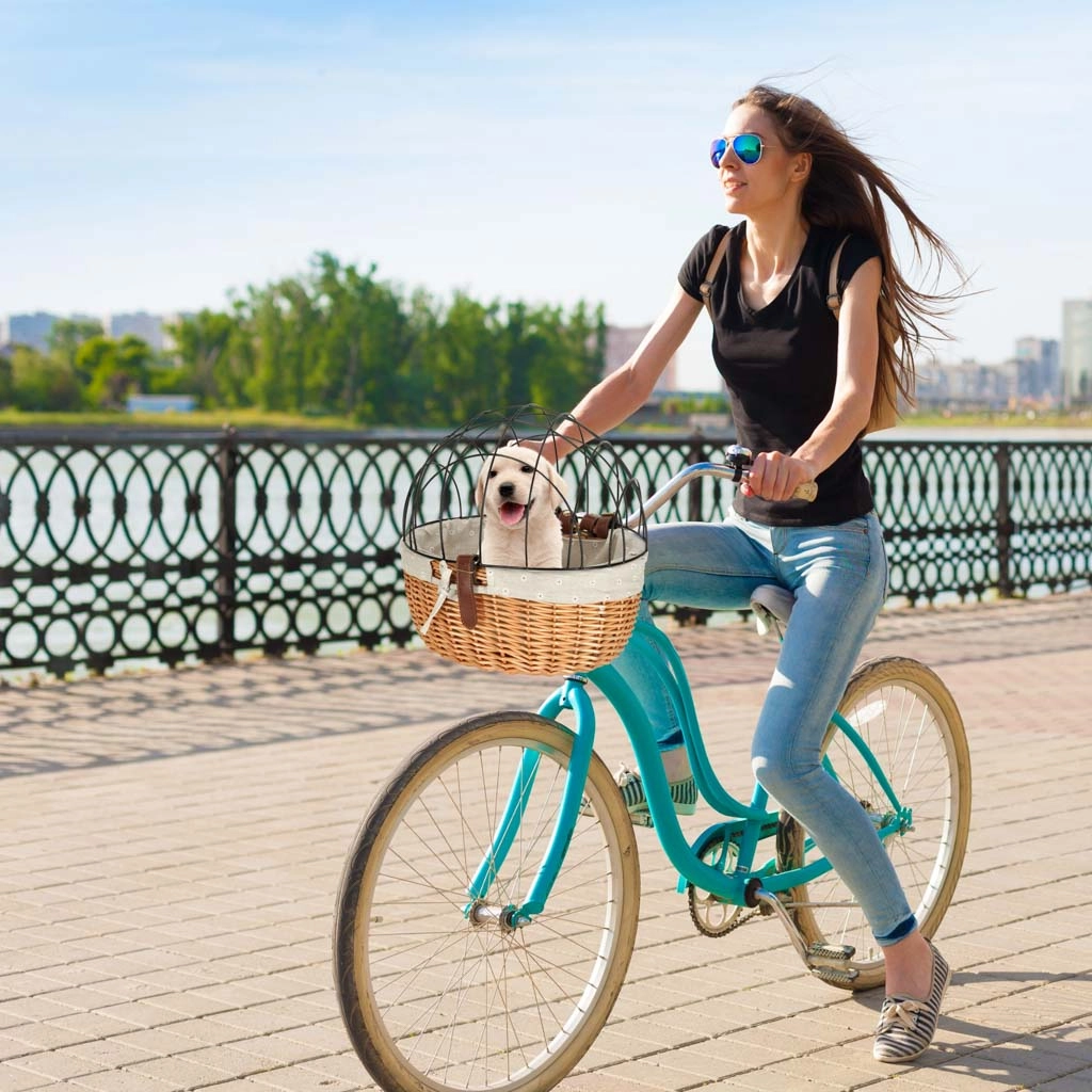 Pletena košara za bicikl s mrežom za vašeg psa ili mačku:- Sigurnost vašeg ljubimca: Metalna mreža osigurava sigurnu vožnju za vašeg ljubimca uz sjajne poglede.