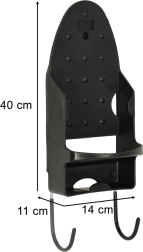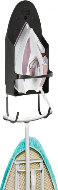Elegantni crni držač štedi prostor u praonici, kupaonici ili garderobi i osigurava sigurno i pregledno odlaganje potrepština za glačanje. Izdržljiva izvedba od PBT-a omogućuje odlaganje glačala odmah nakon završetka, bez čekanja da se ohladi.