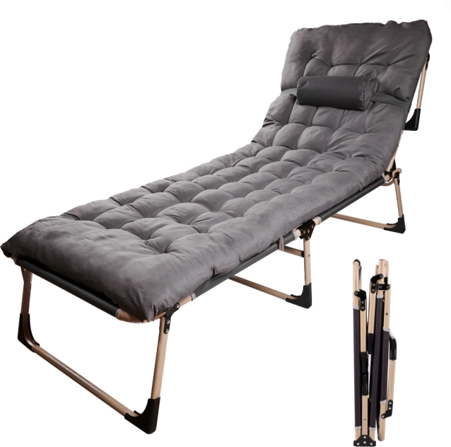 Udobna sklopiva kamping ležaljka s madracem u tamnosivoj boji za odmor kod kuće i na putovanjima. Nudi 4-stupanjsko podešavanje naslona, čvrst čelični okvir s praškastim premazom i izdržljiv presvlaku Oxford 1200D. Nakon sklapanja lako se prenosi i stane u automobil, idealna za kampiranje, terasu i kao pomoćni ležaj za goste.