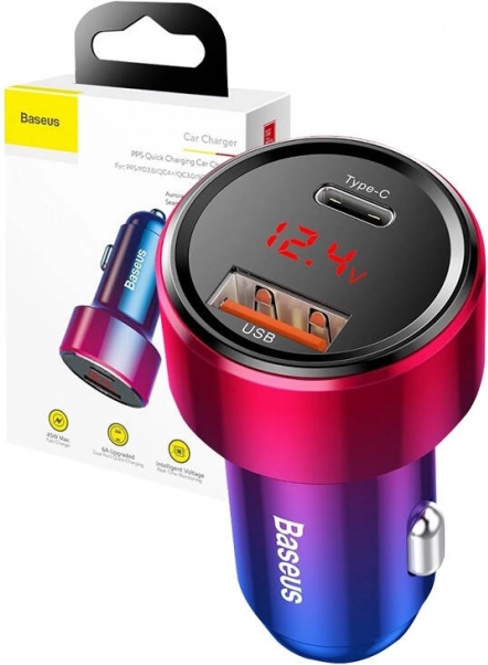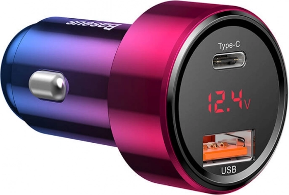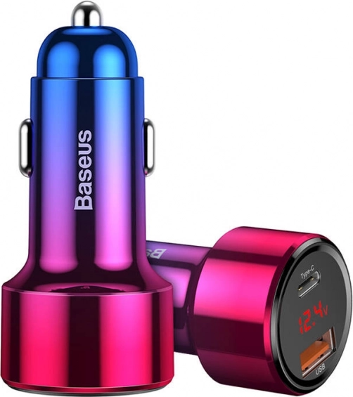 Stilski crveno‑plavi autopunjač BASEUS Magic inteligentno se prilagođava potrebama vašeg uređaja i osigurava brzo i nježno punjenje tijekom vožnje. Zahvaljujući kombinaciji USB‑C i USB‑A portova bez problema ćete puniti dva uređaja odjednom – od pametnih telefona i tableta do dodatne opreme.