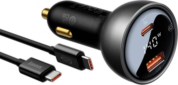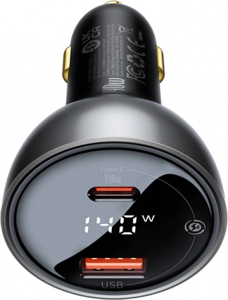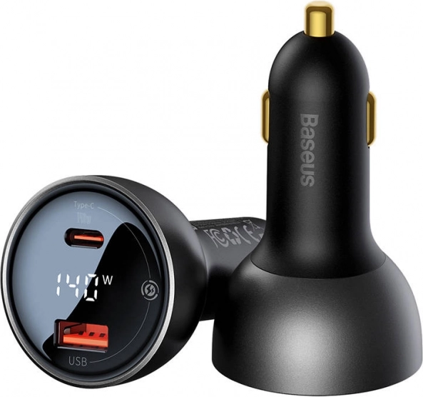 Snažan autopunjač Baseus Superme s maksimalnom snagom 140 W nudi USB‑C i USB priključak za brzo punjenje i do 2 uređaja istovremeno. Podržava moderne standarde brzog punjenja (PPS, PD3.0, QC3.0 i dr.), ima ugrađen digitalni zaslon i zahvaljujući dvostrukom sigurnosnom čipu štiti vaše uređaje. Kompatibilan s vozilima 12–24 V i opremljen pozlaćenim konektorima za stabilnu vezu.