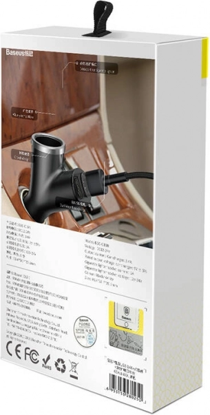 Univerzalni auto punjač Baseus tipa Y spaja prolazni ulaz u upaljač za cigarete s 2× USB (3,4 A) za brzo punjenje. Snažni modul 40 W napaja i zahtjevnije uređaje, a napredna zaštita sprječava kratki spoj, pregrijavanje i prepunjavanje.