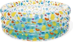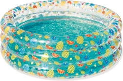 Ovaj stilski dječji bazen s prozirnim stijenama i veselim voćnim motivom unijet će tropsku atmosferu u vaš vrt. Visoke, meke stijenke pružaju ugodnu potporu i udobnost, dok konstrukcija s tri prstena brine za stabilnost i pri veselom brčkanju.