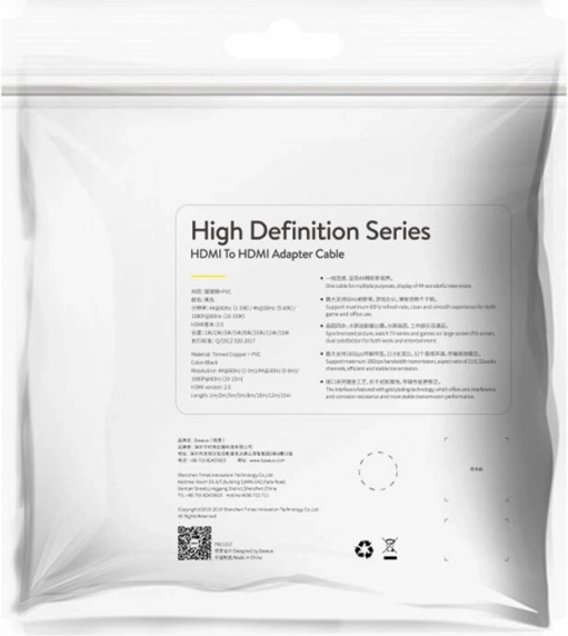 Pouzdan Baseus HDMI kabel duljine 8 m za besprijekoran prijenos slike i zvuka u rezoluciji 4K pri 30 Hz. Nudi HDR, 3D i propusnost 18 Gbps za čist i stabilan signal. Zahvaljujući pozlaćenim konektorima otporan je na koroziju i osigurava dug vijek trajanja.
