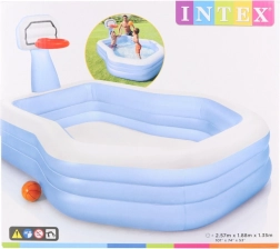Igraći centar s integriranim košem za košarku i loptom nudi sjajnu kombinaciju vodenih radosti i tjelesne aktivnosti. Prostrane dimenzije 257 × 188 × 130 cm i volumen 682 l (pri visini razine vode 32 cm) osiguravaju dovoljno mjesta za djecu od 3 godine.