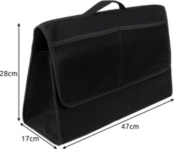 Organizator je opremljen čičak trakama za čvrstu fiksaciju u prtljažniku, što sprječava njegovo pomicanje tijekom vožnje. Zahvaljujući ojačanju stabilan je i lako prenosiv.