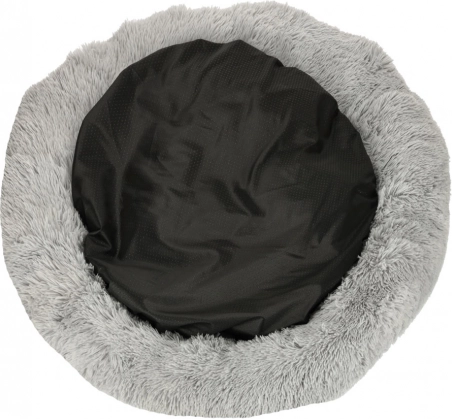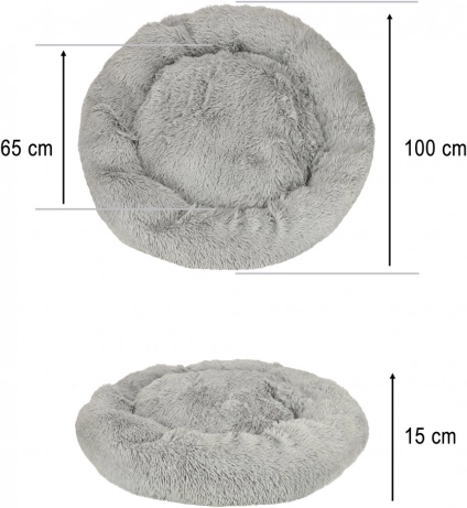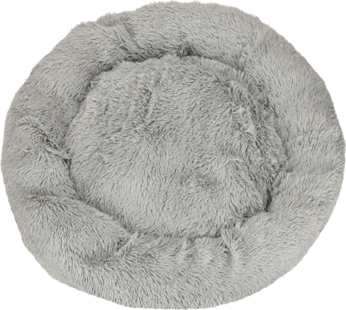 Mekani okrugli plišani krevetić za pse i mačke u svijetlosivoj boji pruža maksimalnu udobnost i osjećaj sigurnosti. Zahvaljujući plišanom materijalu, povišenim rubovima za potporu glave i vrata i protukliznoj donjoj strani idealan je za odmor i neometan san.
