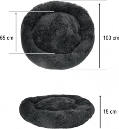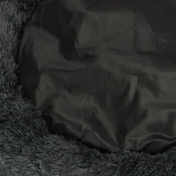 Ovaj mekani, tamnosivi krevetić u obliku donuta pruža psima i mačkama toplo utočište. Nježna plišana površina ugodna je na dodir, a udobno punjenje ublažava pritisak pri ležanju. Povišen obrub pruža potporu glavi i vratu i stvara osjećaj sigurnosti, pa je idealan za ljubimce koji se vole sklupčati.