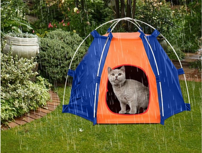 Praktični šator za pse i mačke stvara udobno utočište tijekom odmora i putovanja. Izdržljiva tkanina štiti od kiše i vlage te pruža ugodnu sjenu od sunca, pa ljubimac ostaje suh i u udobnosti. Zaobljeni ulaz olakšava prolaz, a prozračna konstrukcija potiče cirkulaciju zraka.