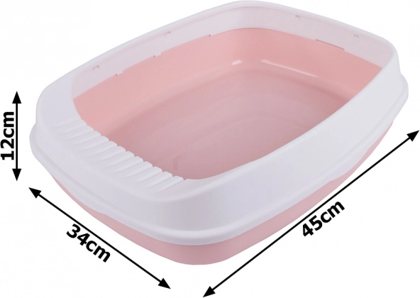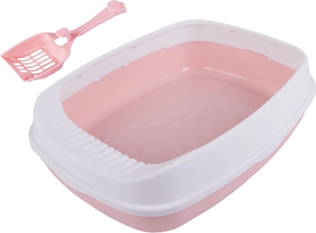 Praktičan i prostran mačji WC s okvirom i lopaticom za jednostavno održavanje. Zahvaljujući otvorenoj konstrukciji i visokim rubovima učinkovito smanjuje nered oko WC-a. Izrađen je od izdržljive plastike, ima glatku površinu za brzo čišćenje i zahvaljujući dimenzijama 45 × 34 × 12 cm prikladan je i za veće mačke.
