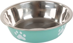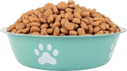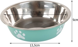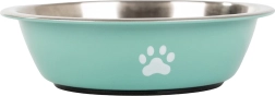 Tirkizna posuda s printom šapica izgleda odlično i pogodna je za pse i mačke za svakodnevno hranjenje.
