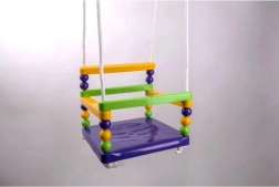 Sigurna i udobna dječja ljuljačka za najmlađe s prednjom sigurnosnom prečkom. Idealna za vrt i dom, u izvedbama zelena, ljubičasta i plava za veselo ljuljanje svaki dan.