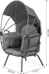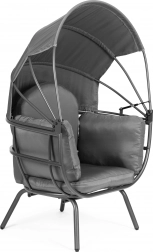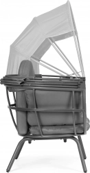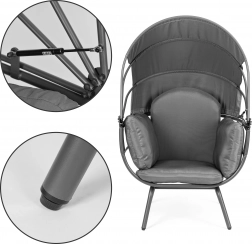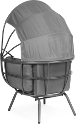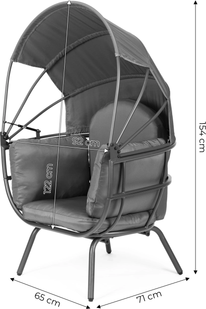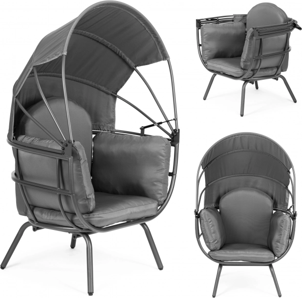 Stabilna i čvrsta čelična konstrukcija osigurava sigurnost i udobnost. Velika sklopiva nadstrešnica pruža ugodnu sjenu tijekom vrućih dana i štiti od naleta vjetra. Čitanje, sunčanje ili opuštanje na otvorenom nikada više neće biti isto.