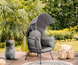 Vrtna fotelja ModernHome nudi luksuzan boravak na svježem zraku s mekanim jastucima i sklopivom nadstrešnicom koja vas štiti od sunca i vjetra.