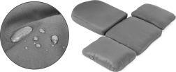 Za maksimalnu udobnost uz vrtnu fotelju dolaze četiri jastuka. Ovi jastuci nisu samo udobni, već su i otporni na sve vremenske uvjete. Materijal se lako održava i brzo se suši, a opremljen je patentnim zatvaračem za jednostavno skidanje navlaka i pranje.