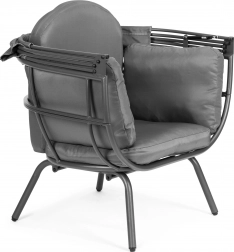 Vrtna fotelja uključuje četiri jastuka koji su udobni, otporni na vremenske uvjete i jednostavni za održavanje zahvaljujući odvojivim navlakama na patentni zatvarač.