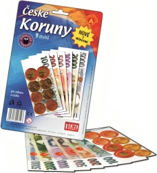 Zabavni set igraćeg novca sadrži 6 vrsta obojenih čeških novčanica i kovanice u vrijednostima od 10, 20 i 50 CZK. Ukupno sadrži 149.340 CZK, što je dvostruko veća količina od konkurentskih proizvoda. Ovaj set je idealan za djecu koja žele naučiti koristiti novac te je prikladan i kao učni materijal za školsku nastavu.