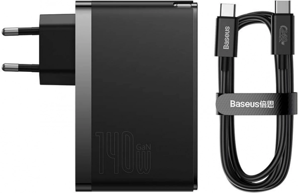 Zidni punjač Baseus s USB-C i USB priključcima, 140 W crni
