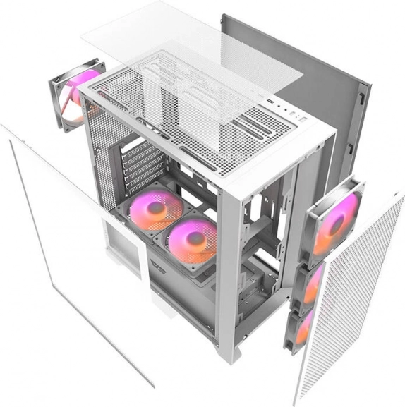 - Odličan protok zraka: mesh prednja strana + do 8 ventilatora / 6× 140 mm