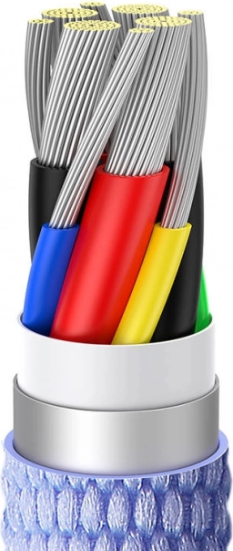 Kabel je izrađen od izdržljivih materijala s gustom tekstilnom pletenicom i ojačanim zonama savijanja koje štite 8-žilnu jezgru od oštećenja. Zahvaljujući duljini od 2 metra imate više slobode, bilo da punite na kauču, za radnim stolom ili na stražnjem sjedalu u automobilu. Ljubičasto izdanje vašem uređaju dodaje stil i preglednost među kabelima.