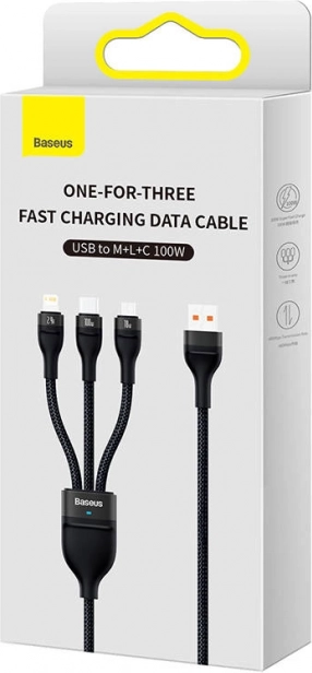 USB kabel Baseus Flash Series 3u1 je idealan za one koji trebaju brzo, sigurno i učinkovito punjenje nekoliko uređaja odjednom. Zahvaljujući njegovoj univerzalnosti možete lako puniti pametne telefone, tablete, power bankove i druge uređaje s konektorima USB-C, Micro USB i Lightning.