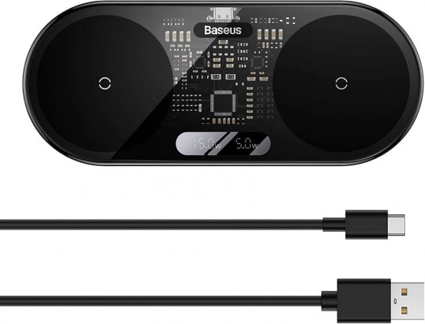 Bežični punjač Baseus omogućuje brzo i učinkovito punjenje dvaju uređaja istovremeno, kako za iOS tako i za Android. Opremljen je digitalnim LED zaslonom koji prikazuje trenutačnu snagu punjenja.