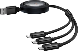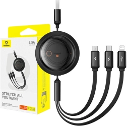 BASEUS Free2Draw je pametno rješenje koje zamjenjuje više kabela. Tri konektora u jednom kućištu omogućuju punjenje do tri uređaja istodobno, i to strujom do 3,5 A. Kompaktna namotavajuća konstrukcija štedi prostor u torbi i na stolu te sprječava zapetljavanje.
