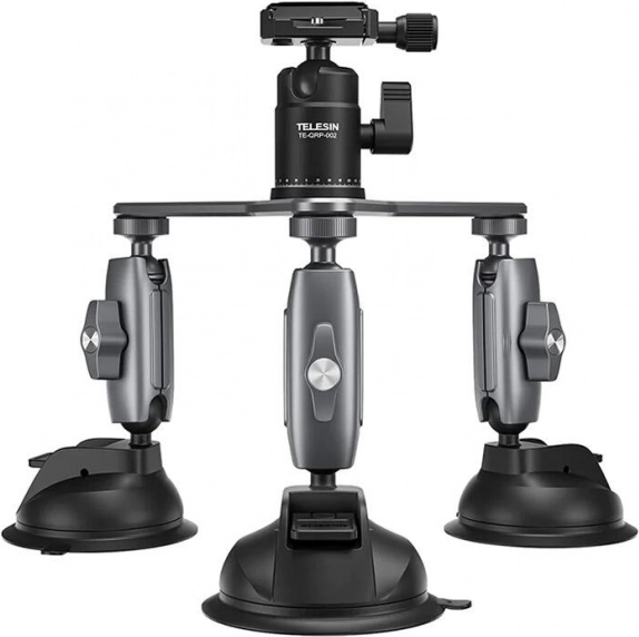 Telesin trokraki vakuumski držač pouzdano je rješenje za snimanje u automobilu i izvan njega. Tri snažne vakuumske čaše pružaju maksimalnu stabilnost na haubi, staklu, vratima ili drugim ravnim i glatkim površinama. Rotirajuća glava s finim podešavanjem omogućuje vam precizno namještanje idealnog kuta kadra.