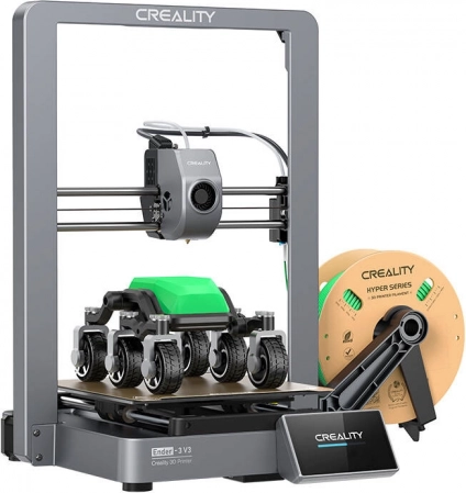 Ender-3 V3 podržava PLA, TPU, PETG, ABS, PLA-CF, PETG-CF i CR‑carbon te nudi pametne funkcije poput detekcije filamenta i nastavka ispisa nakon nestanka struje. Ispisujte s USB-a, preko LAN-a ili iz oblaka, uz praktično upravljanje putem 4,3" kolor dodirnog zaslona i ekosustava Creality Print i Creality Cloud.