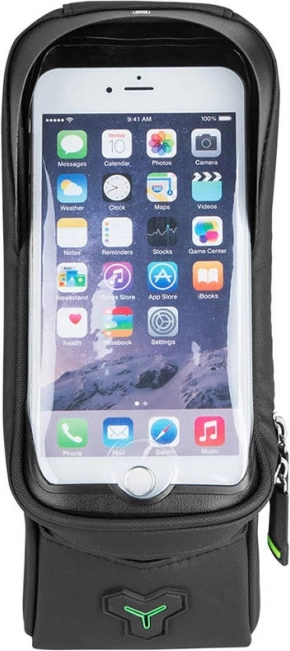 Ova okvirna torbica za bicikl spaja funkciju držača telefona i spremišnog prostora u jednom. Zahvaljujući vodootpornoj konstrukciji štiti vaše stvari od kiše, dok prozirni dodirni prozor omogućuje udobno upravljanje navigacijom, glazbom ili pozivima tijekom vožnje. Integrirana sunčana klapna poboljšava čitljivost zaslona i na jakom suncu.