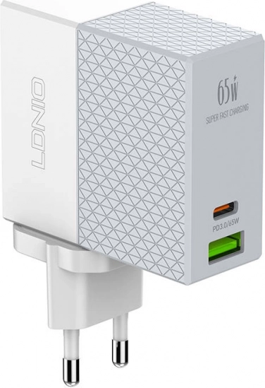 LDNIO 65W punjač opremljen je ne samo USB-A već i USB-C priključkom, što omogućuje istovremeno punjenje dvaju uređaja snagom do 65 W. Podrška za protokole PD i QC3.0 jamči učinkovito i sigurno punjenje, idealno za suvremene uređaje.