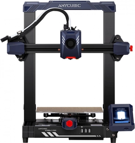 ANYCUBIC Kobra 2 Pro je snažan FDM 3D pisač osmišljen za brzu produkciju kvalitetnih ispisa. Kombinira standardnu brzinu 300 mm/s i maksimalnih 500 mm/s s inteligentnom kompenzacijom vibracija i upravljanjem protokom, pa i detaljne modele ispisuje čisto i s visokom ponovljivošću. Konstrukcija s izravnim dovođenjem filamenta, dvostrukim vodilicama osi i dvostrukim Z navojem donosi stabilnost i preciznost.