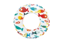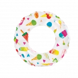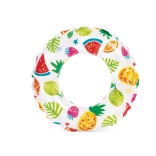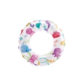 Ovaj dječji napuhujući prsten savršen je izbor za prve vodene radosti. Lagana konstrukcija i izdržljiv PVC materijal osiguravaju stabilnost i udobnost pri plivanju i igri u vodi. Vesele ilustracije ribica, morskih stvorenja, sladoleda i voća razveselit će svako dijete i uljepšati ljetne dane.