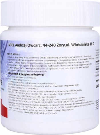 - Preporučeno doziranje za bazensku vodu: 5 g/m³ vode.