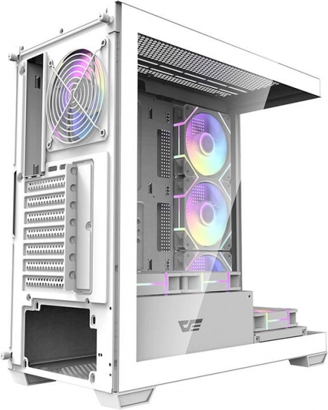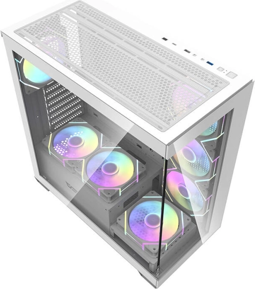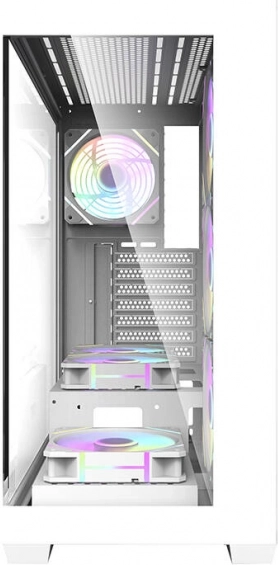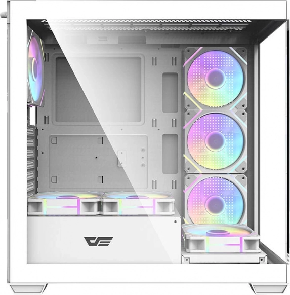 Elegantno i prostrano računalno kućište Darkflash DS900 u bijeloj boji nudi panoramski dizajn bez A-stupa, dvije bočne stranice od kaljenog stakla i već ugrađenih 7 ARGB ventilatora od 120 mm. Pruža izvrsan protok zraka, podršku za velike 360 mm hladnjake, kompatibilnost s pločama ATX/M-ATX/ITX i lako proširenje zahvaljujući 7 PCI utora i promišljenom unutarnjem rasporedu.