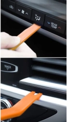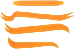 Set sadrži 4 plastične poluge i metalni izvlakač s ergonomskim držalom za brzo i sigurno vađenje kopči bez ogrebotina.