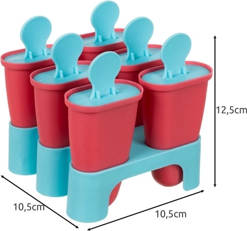 Pametna konstrukcija nudi 6 cilindričnih kalupa za ravnomjerno zamrzavanje. Poklopac služi kao štapić s udobnim okruglim prihvatom i tri otvora za čvrsto spajanje sa zamrznutom smjesom, pa sladoled nakon vađenja iz kalupa ne klizi. Stabilna baza drži kalupe savršeno uspravno pri punjenju i zamrzavanju, što minimalizira nered.