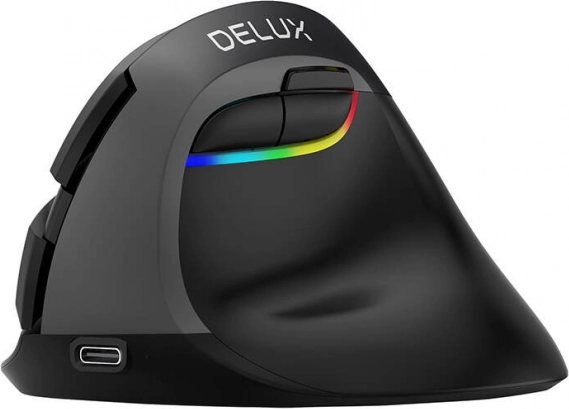 Delux M618 Mini je kompaktan vertikalni miš dizajniran za zdraviji hvat i prirodan položaj zapešća. Ergonomsko oblikovanje smanjuje napetost pri dugotrajnoj uporabi, dok tihe tipke održavaju mirno radno okruženje. Zahvaljujući dvostrukom bežičnom povezivanju (2,4G i Bluetooth) možete glatko prebacivati između do tri uređaja.