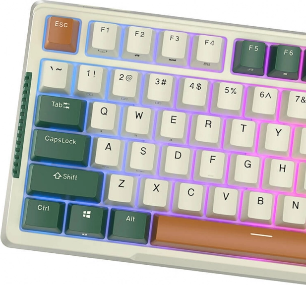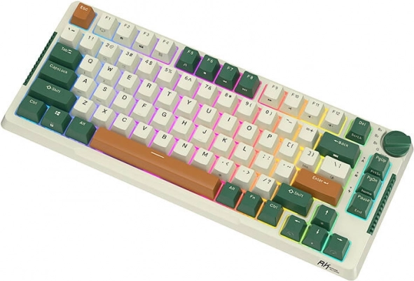 Royal Kludge RKH81 spaja kompaktni 75% raspored s pametnom opremom za svakodnevnu produktivnost i gaming. Dobivate 3 načina povezivanja (USB‑C, 2,4 GHz, Bluetooth s do 3 uređaja), hotswap ležište za jednostavnu zamjenu sklopki i RGB osvjetljenje s 14 načina. Robusna konstrukcija smanjuje buku, a protuklizne nožice osiguravaju stabilnost na stolu.