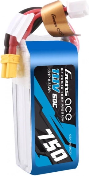 Uživajte u sigurnosti performansi s baterijom Gens Ace 3S 11,1 V 750 mAh. Visoka opterećenja 60C osiguravaju trenutačan odziv i stabilan napon čak i pri dinamičnim manevrima. Konektor XT30 pruža sigurno i čvrsto povezivanje, dok balans konektor JST‑XH olakšava precizno izjednačavanje ćelija.