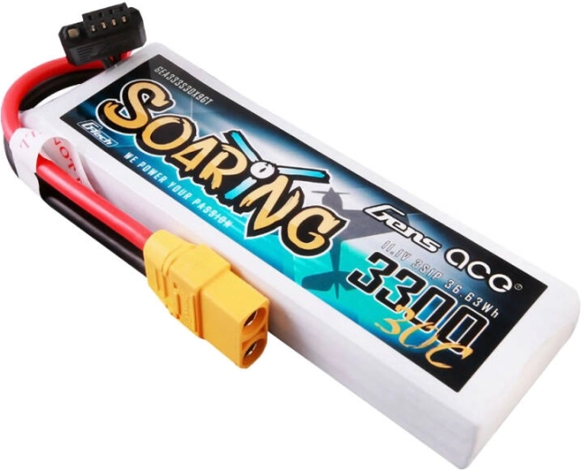 Gens Ace G-Tech Soaring s XT90 konektorom specijalizirani je izvor energije namijenjen za upotrebu u letačkim modelima, kao što su dronovi, multirotori i bespilotne letjelice. LiPo akumulator kapaciteta 3300 mAh i napona 11,1 V pruža odlične performanse i dugotrajan rad, što je važno za primjene koje zahtijevaju stabilno i neprekinuto napajanje. Stopa pražnjenja od 30C osigurava brzo isporučivanje potrebne snage. Akumulator teži 252 g i ima dimenzije 131 x 42,5 x 19,5 mm, što omogućuje jednostavnu ugradnju u različite letačke modele. XT90 konektor osigurava sigurno i pouzdano povezivanje, dok balansni konektor JST-XH pomaže održavati ćelije ravnomjerno napunjenima. Idealan je izbor za modele poput Easy Glider, Fun Cup i E-flite.
