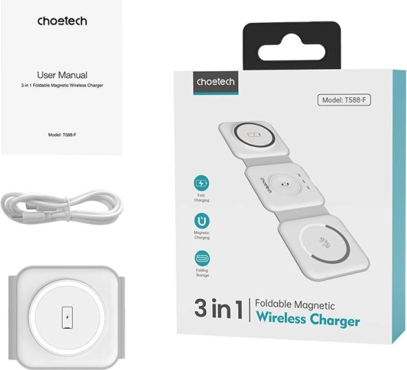 Učinkovito punite uređaje: Choetech 3-u-1 omogućuje vam da zaboravite na zamršene kabele. Bežično punite svoj iPhone, Apple Watch i AirPods istovremeno i održavajte uredan stol.