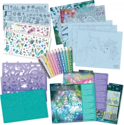U pakiranju se nalazi raznolika paleta likovnih pomagala i dodataka s kojima djeca mogu precrtavati, bojati, crtati i lijepiti. Zahvaljujući jasnim uputama korak po korak brzo svladavaju nove tehnike i stvaraju prekrasne crteže inspirirane magičnim svijetom životinja.