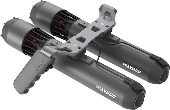 Dvostruki držač Waydoo revolucionaran je dodatak dizajniran za entuzijaste podvodnih avantura. Uz mogućnost povezivanja dvaju skutera možete uživati u maksimalnoj brzini do 2 m/s i istraživati podmorske svjetove s dvostrukom učinkovitošću.