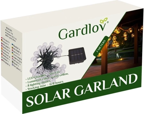 Obogatite svoj vrt s elegantnom solarnom svjetlosnom girlandom ukupne duljine 7 metara. Ovaj inovativni proizvod sastoji se od 50 kuglica izrađenih od visokokvalitetnog polistirena. Materijal je izdržljiv, a estetičnost krasi vaš prostor i bez svjetla. Svaka kuglica je inspirirana dizajnom sitnih mjehurića, koji povećavaju učinkovitost i također ljepotu svjetla.