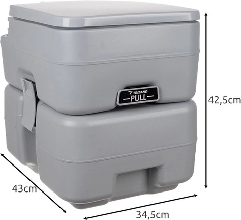 Tražite praktično i higijensko rješenje za putovanja i boravak izvan civilizacije? Prijenosni WC TRIZAND kombinira kompaktne dimenzije, malu masu i veliki kapacitet spremnika. Gornji dio s spremnikom za vodu od 12 l i ručnom pumpom za ispiranje omogućuje višekratnu uporabu bez pristupa vodovodu. Donji spremnik za otpad od 20 l hermetički je zatvoren i opremljen velikim ispustom s navojnim čepom za čisto i brzo pražnjenje.