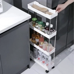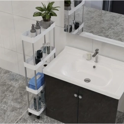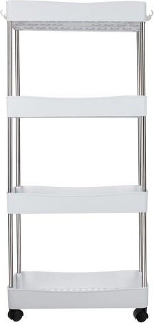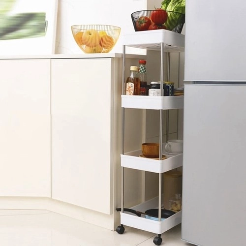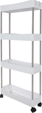 Mobilni policijski regal RUHHY univerzalno je rješenje za uštedu prostora u uskim procjepima i uobičajenim zonama doma. Zahvaljujući modularnoj konstrukciji lako prilagodite broj polica prema potrebi i koristite ga u kupaonici za kozmetiku i sredstva za čišćenje, u kuhinji za začine i boce, u radnoj sobi za dokumente ili u praonici za deterdžente.