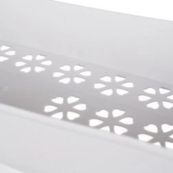 Kombinacija precizno uklopljenih spojeva od nehrđajućeg čelika i kvalitetnog PP-a osigurava stabilnost i dug vijek trajanja. Perforirano dno polica s cvjetnim motivom ne samo da uljepšava interijer, već i poboljšava odvod vlage. Četiri okretna kotačića omogućuju glatko premještanje i u skučenim prostorima, a praktične kuke sa strane drže ručnike, spužvice ili četke pri ruci.